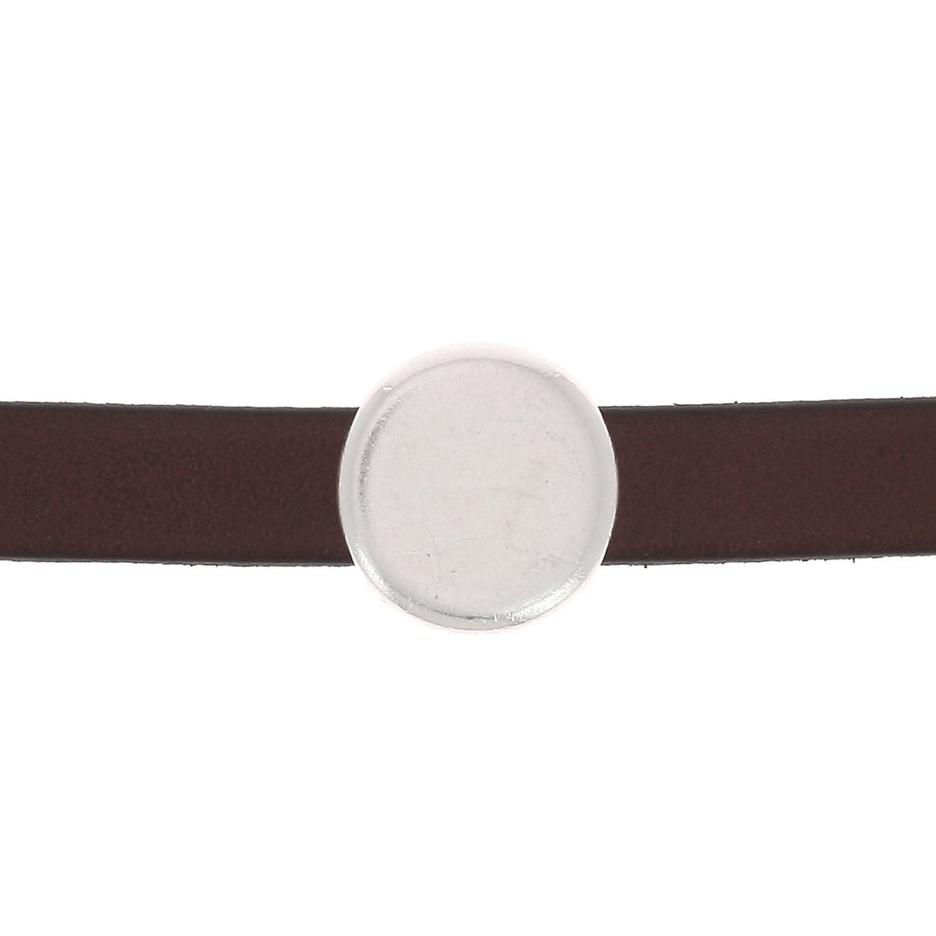 Cette perle coulissante en métal se glisse dans un lacet en cuir plat de 10 mm de largeur maximum pour réaliser un bijou fantaisie ou un accessoire fait main.