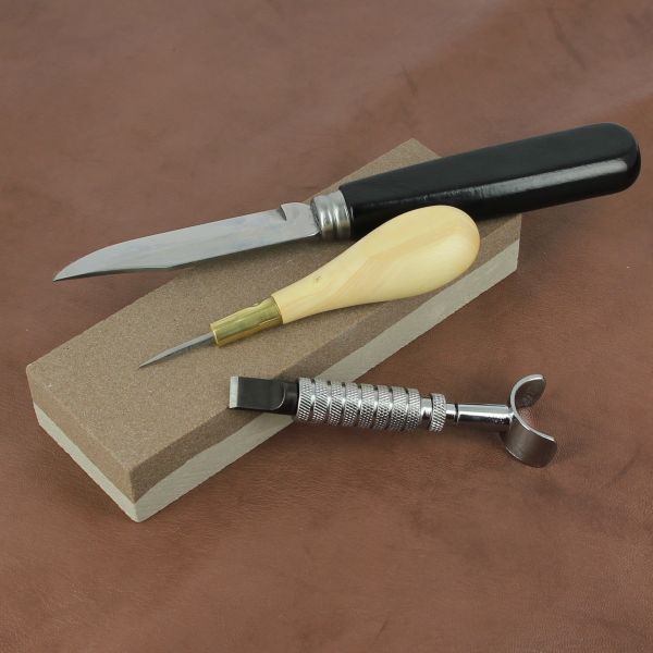 Cette pierre vous servira pour l'affûtage de vos outils (alène, lames d'alène, couteaux...), mais également pour aiguiser des emporte-pièces à frapper.