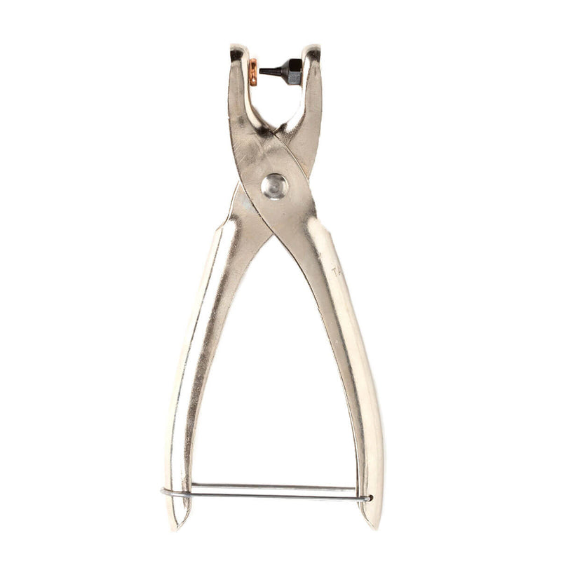 Pince en acier, pour percer des trous ronds de diamètre 1,5 mm (1/16"). Idéal pour la couture du cuir à la main.Blocage de la pince en position fermé à l'aide d'un crochet en fil d'acier