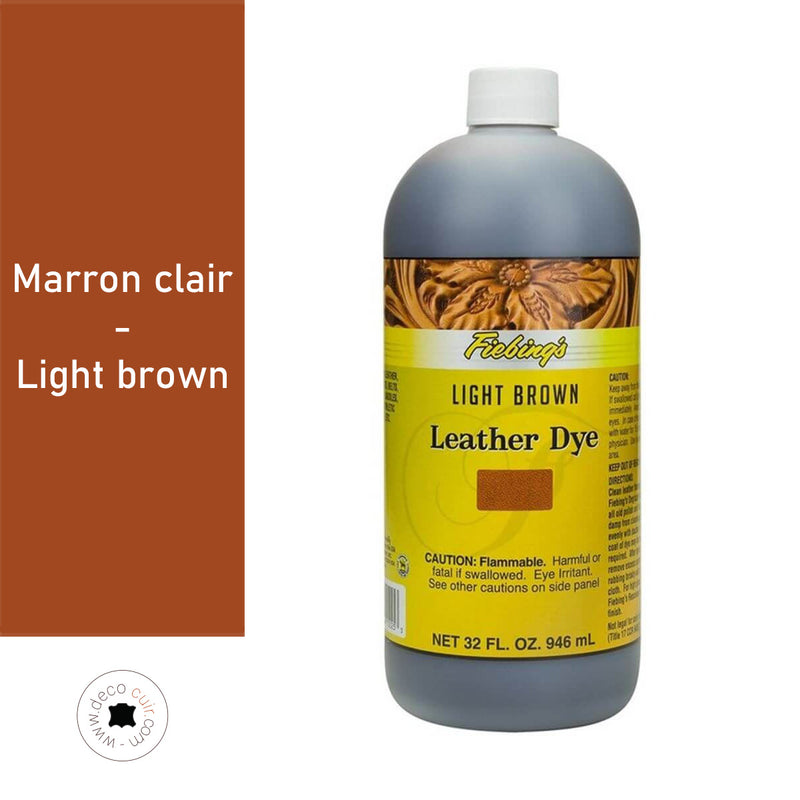 La teinture pour cuir Fiebing's Leather DYE a un fort pouvoir couvrant avec des couleurs vives et une bonne tenue dans le temps. Teinture professionnelle à base d'alcool.