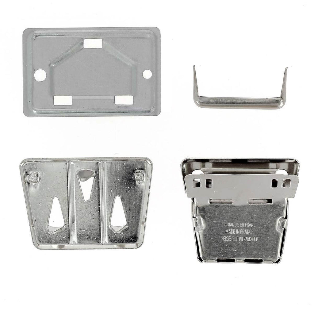 Montage facile sans outil particulier : inciser au préalable 3 fentes dans votre cuir pour poser la plaque arrière, puis rabattre les piques sur l'arrière du cuir.
